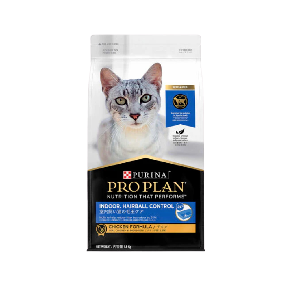 طعام جاف مخصص للقطط المنزلية، يساعد في التحكم في كرات الشعر ودعم صحة الجهاز الهضمي، بتركيبة غنية بالألياف والدجاج كمصدر أساسي للبروتين.